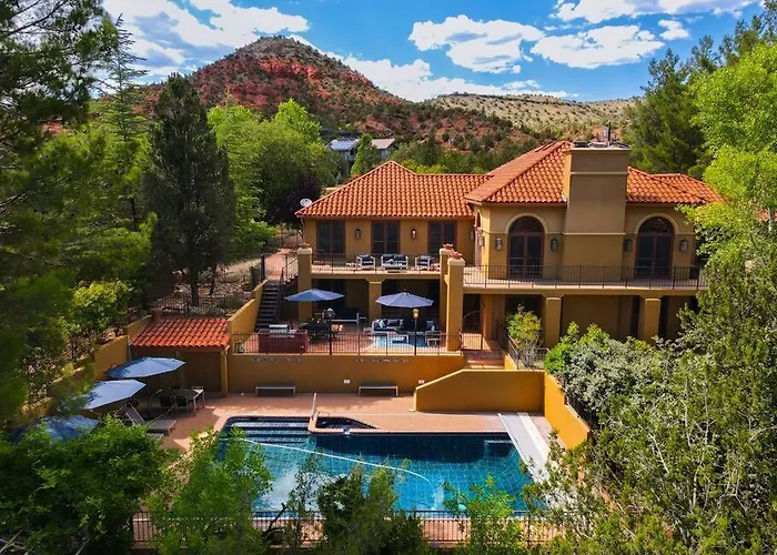 Located 2.7 miles from the renowned red Cathedral Rock, the 4-bedroom Majestic Creekside Escape With Pool, Spa, Sauna, Gym Sedona villa features a private swimming pool, Jacuzzis, a hot tub, and a sauna, ensuring a relaxing stay. Featuring access to a terrace, this villa is located around a 10-minute drive from Crescent Moon Picnic Site.